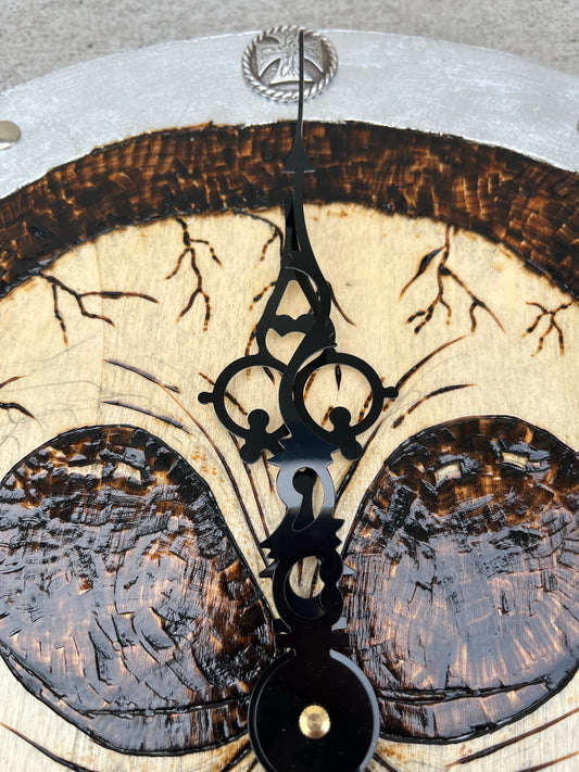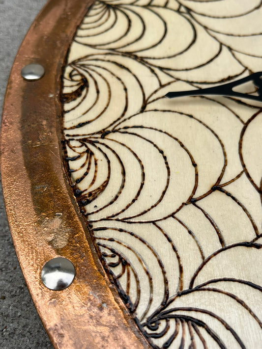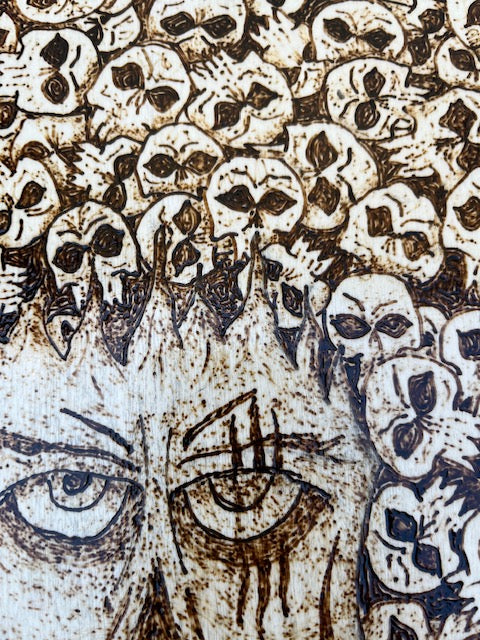 Pyrography: the art or technique of decorating wood or leather by burning a design on the surface with a heated metallic point.